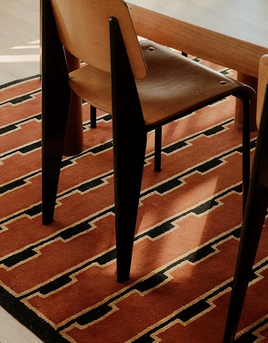 Stepped Horizon Handwoven Rug – Burgundy Terracotta & Onyx