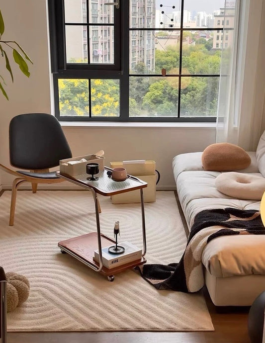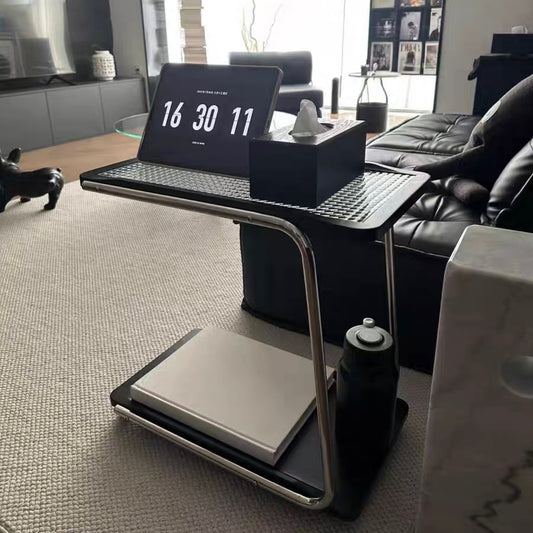 Portable Glass & Wood C-Shaped Side Table - Classic Black