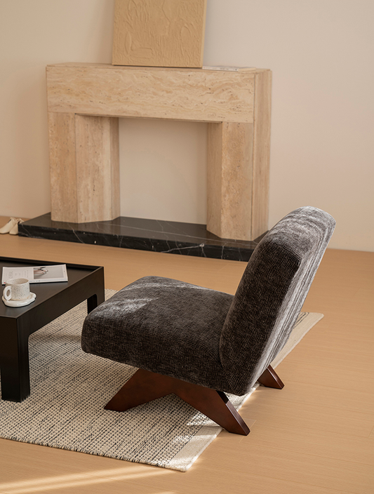 Portable Glass & Wood C-Shaped Side Table - Warm Walnut