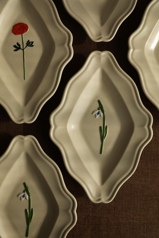 Vintage Bloom Ceramic Plate – Orchid & Poppy Design