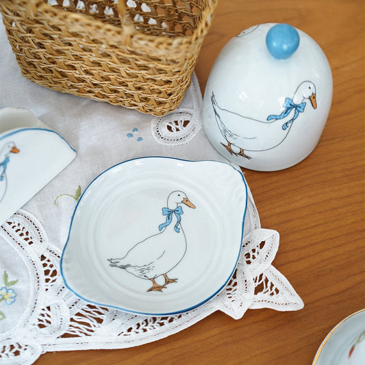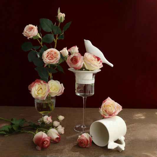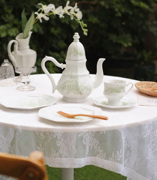Whispering White Porcelain Tableware Set – Mug, Utensil Rest & Bird Flower Inserts