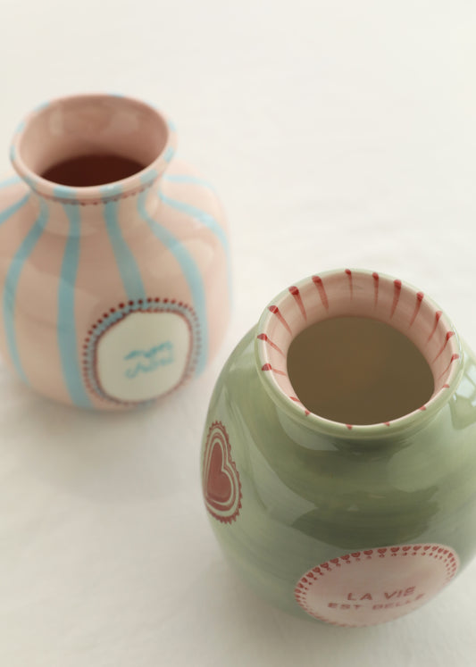 Mon Chéri & La Vie Est Belle – Hand-Painted Ceramic Bud Vases