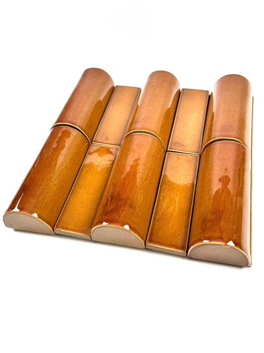Amber Flame Blown Glass Table Lamp with Solid Wood Base – LED 3-Color Light