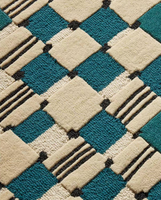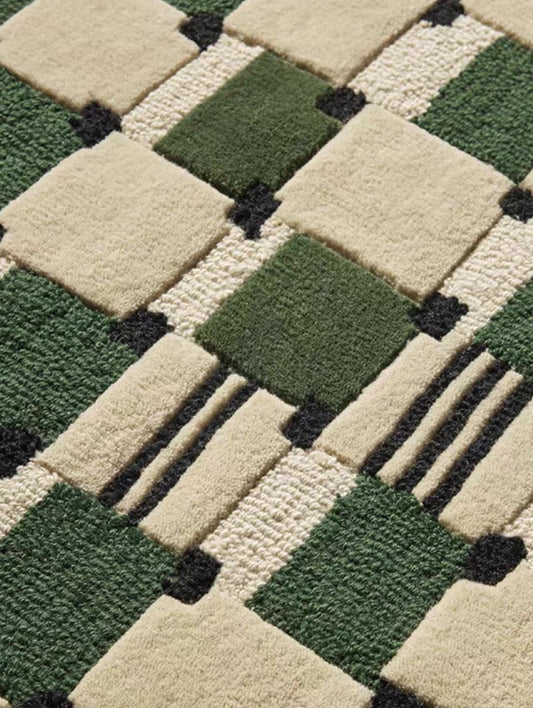 Grid Echo Handwoven Rug – Forest Green