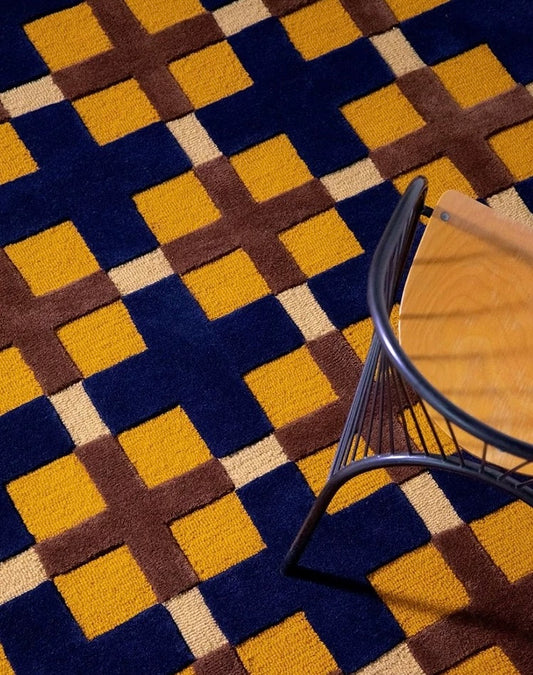 Gridplay Handwoven Rug – Amber Gold & Cobalt