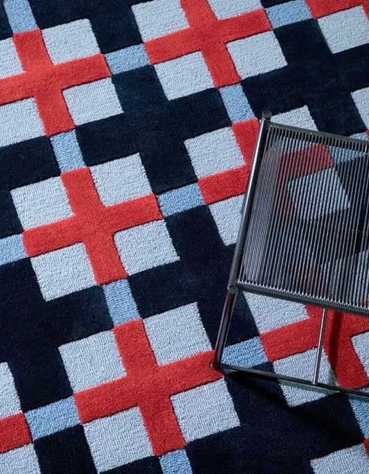 Gridplay Handwoven Rug – Brick Red & Morandi Blue