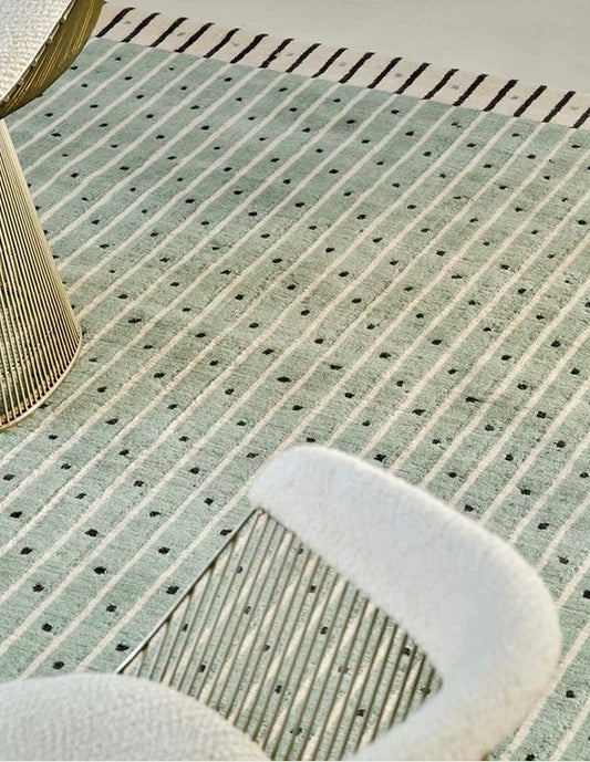 Morandi Mint Green Lines Handwoven Rug – Geometric Stripe