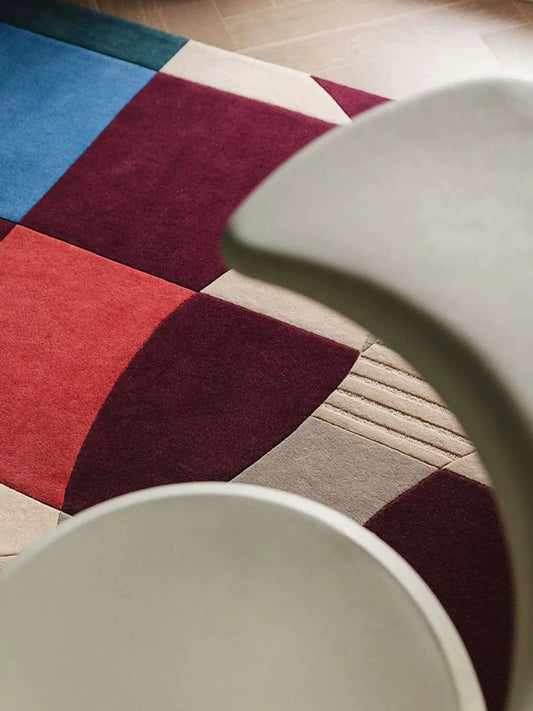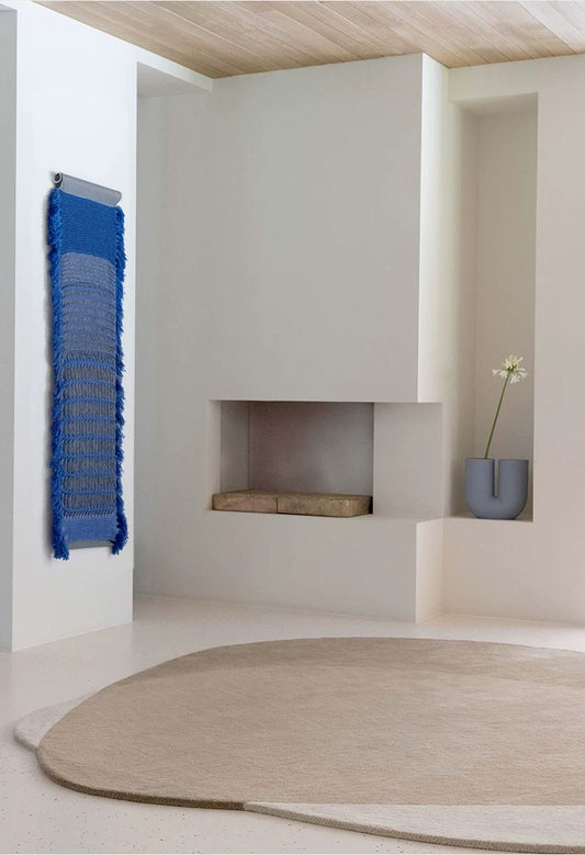 Overlap Form Handwoven Rug – Sand Beige / Ocean Blue