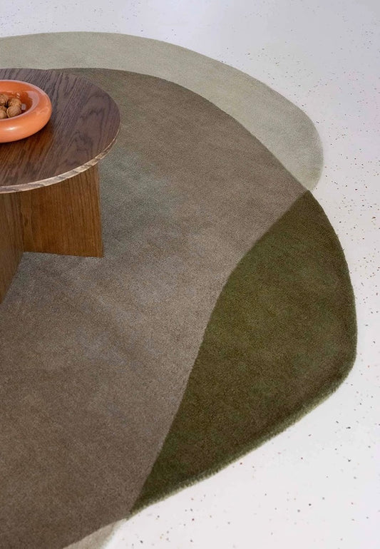 Overlap Form Handwoven Rug – Olive Green / Terracotta