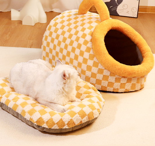 Cozy Checkered Pet Bed with Handle
