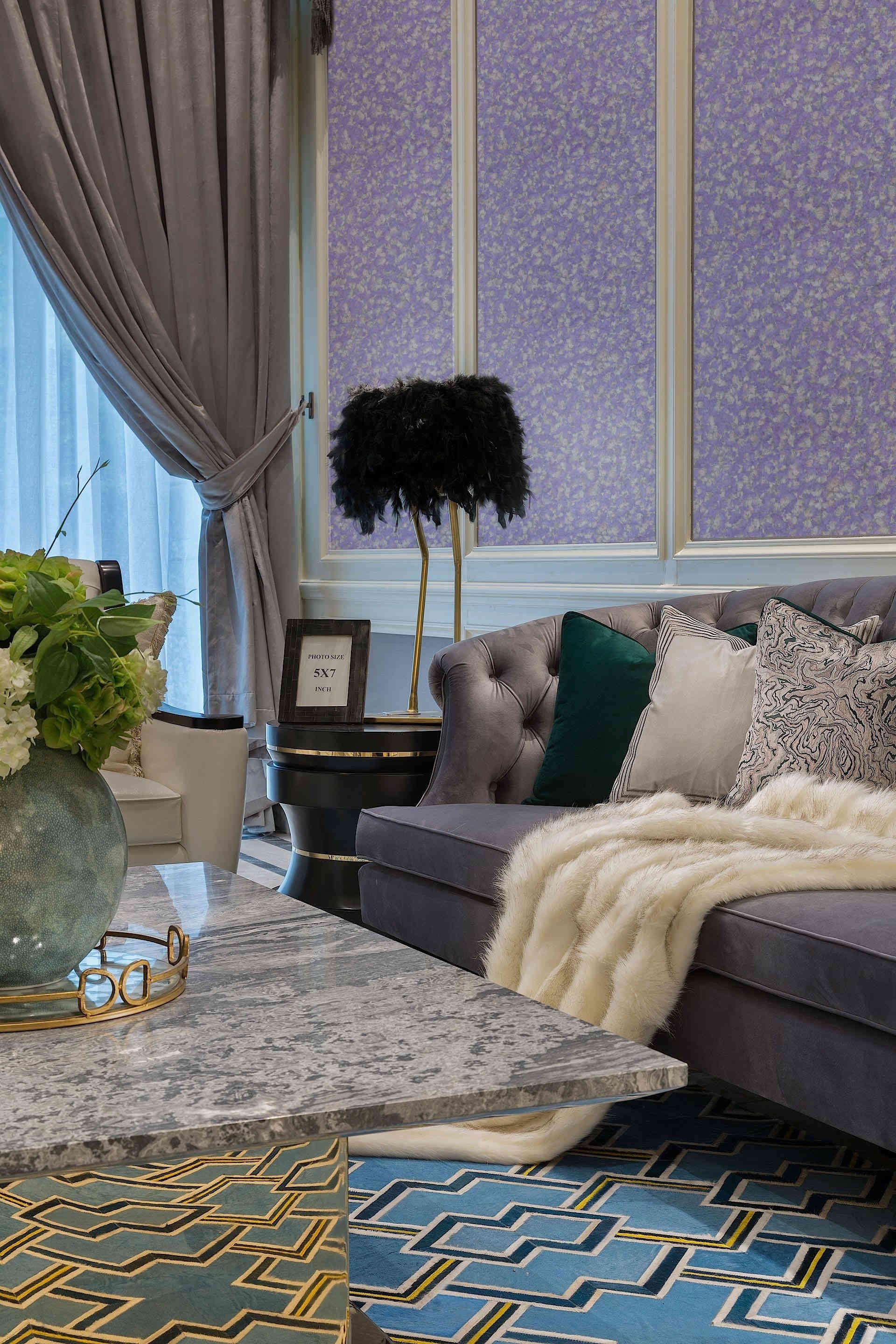 • Cool-toned palette ranging from indigo to soft violet creates a tranquil visual atmosphere