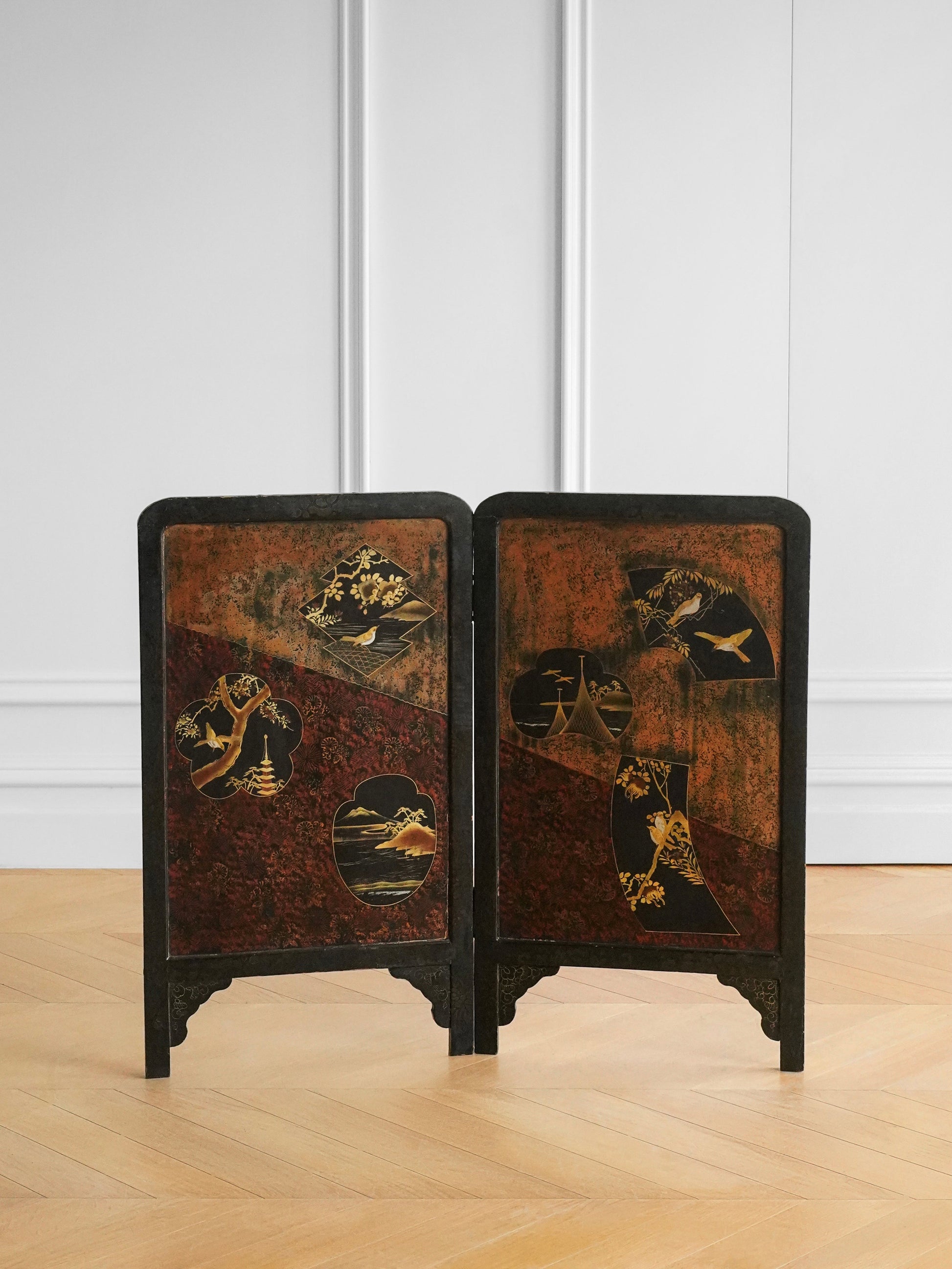 Japanese 20th Century Lacquer Folding Screen (Two-Panel)