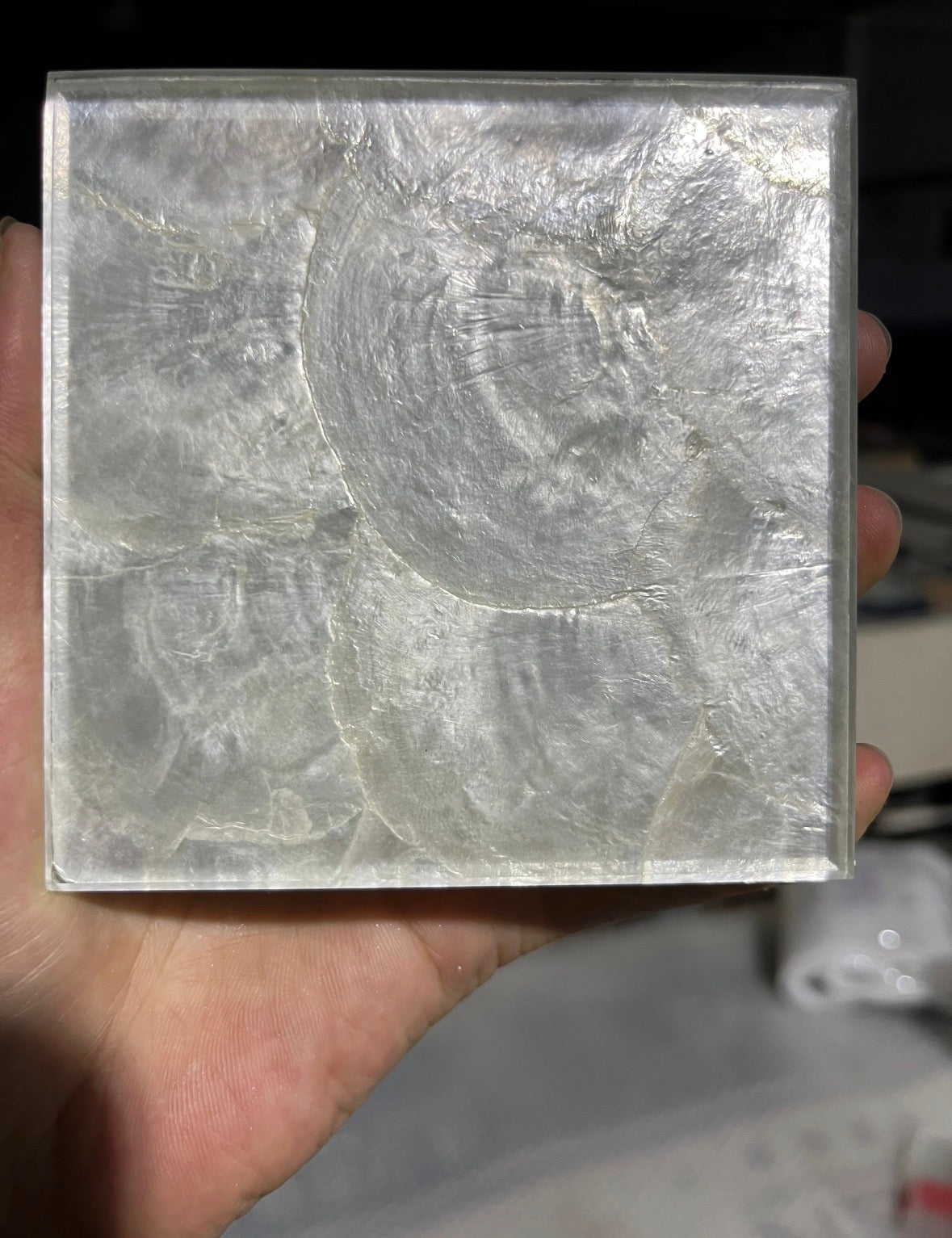 This series is defined by its extraordinary Optical Refraction and multidimensional depth. The lamination process protects the delicate shell layers while enhancing their natural iridescence through the glass medium.