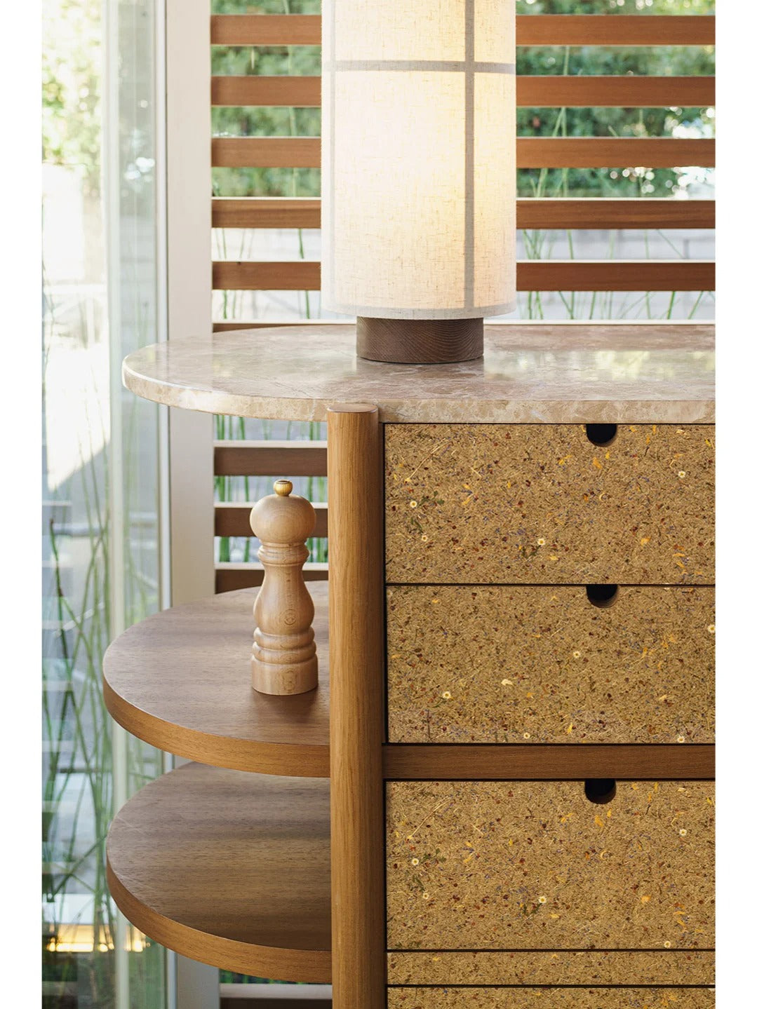 • Biomass fiber structure delivers warmth, tactility, and material depth