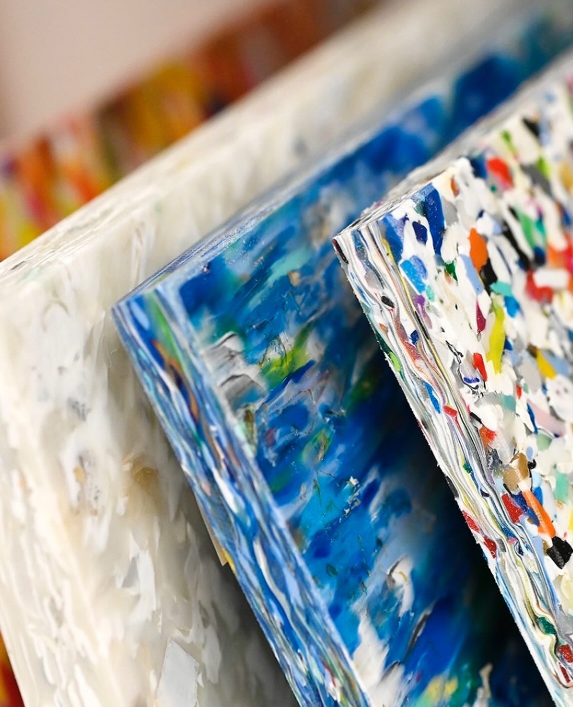 Designed for interior finishes, furniture production, retail environments, and product development, the sheet offers excellent rigidity, visual depth, and a customizable aesthetic. Its vibrant patterns and translucent options enable expressive applications while significantly reducing the environmental footprint of traditional plastics. The material is fully recyclable, allowing continuous reuse within a closed-loop system.