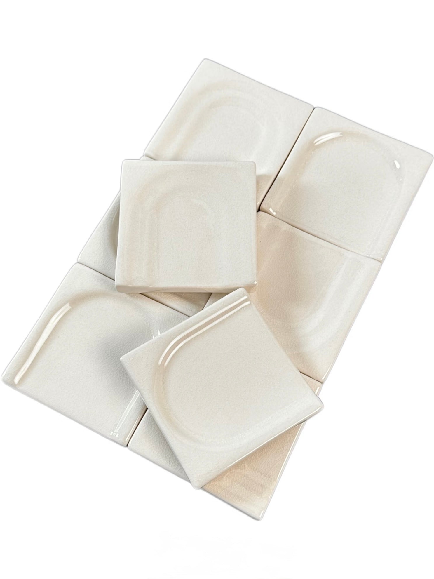 The Arcus Arch Handcrafted Tile captures the elegance of architectural arches through a soft square format with recessed curved relief. Each piece is individually crafted, featuring a subtle arch impression that creates depth, shadow, and refined geometry within a compact surface.