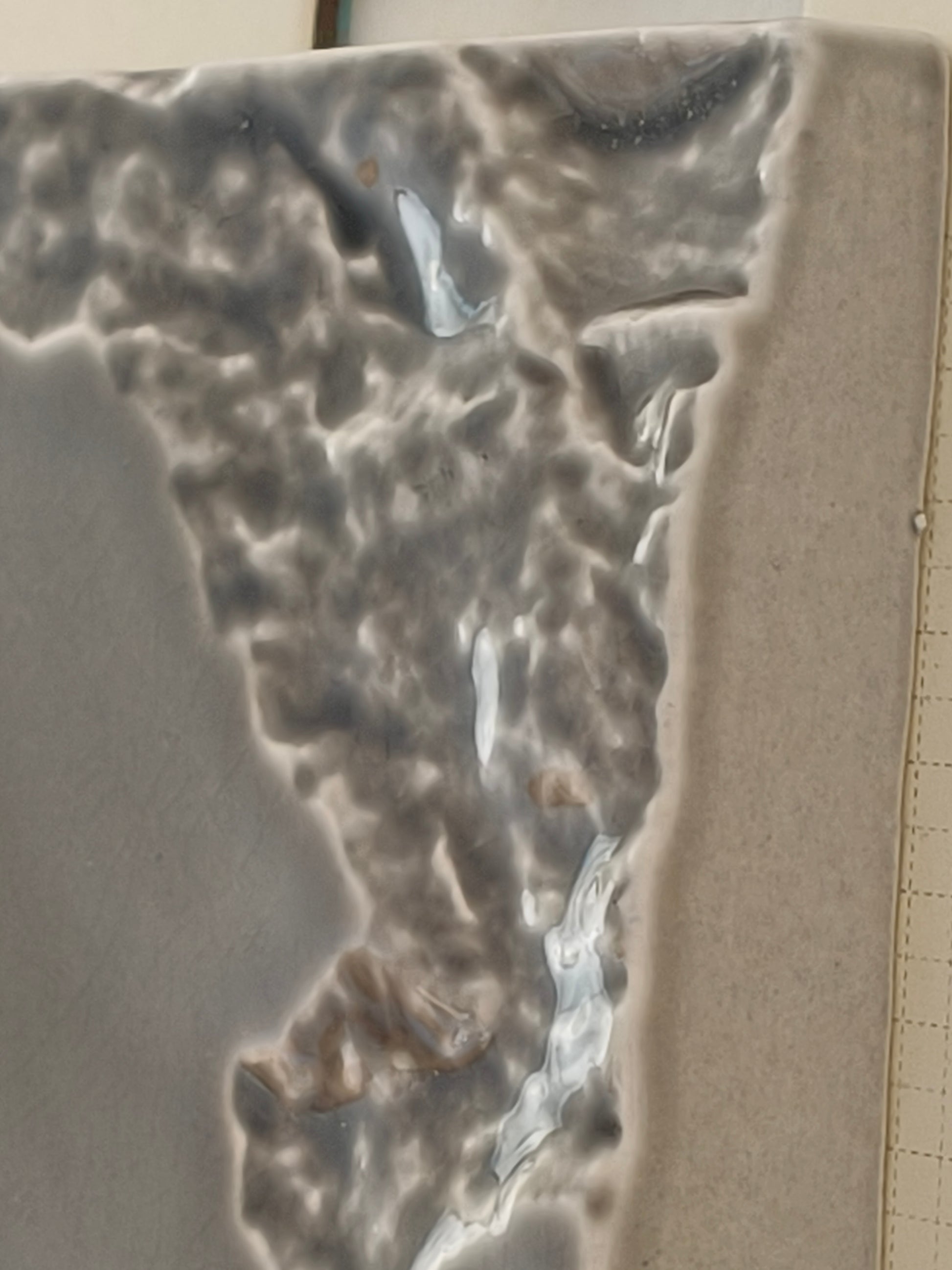 The Gray Mountain Glaze Tile transforms an organic, eroded surface into a dramatic sculptural form. Its raised mountain-like contours and softened surrounding plains create a striking interplay of depth, shadow, and reflected light, giving the tile a geological presence reminiscent of misted cliffs or weathered stone formations.