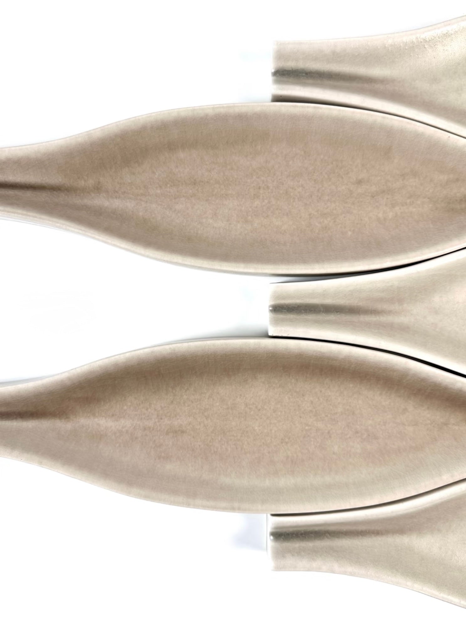 The Ivory Leaf Ceramic Tile embodies organic elegance with its flowing leaf-like silhouette. Its elongated form and subtle curvature create a sense of natural rhythm, making it an ideal choice for walls or feature installations that seek both artistry and refinement.