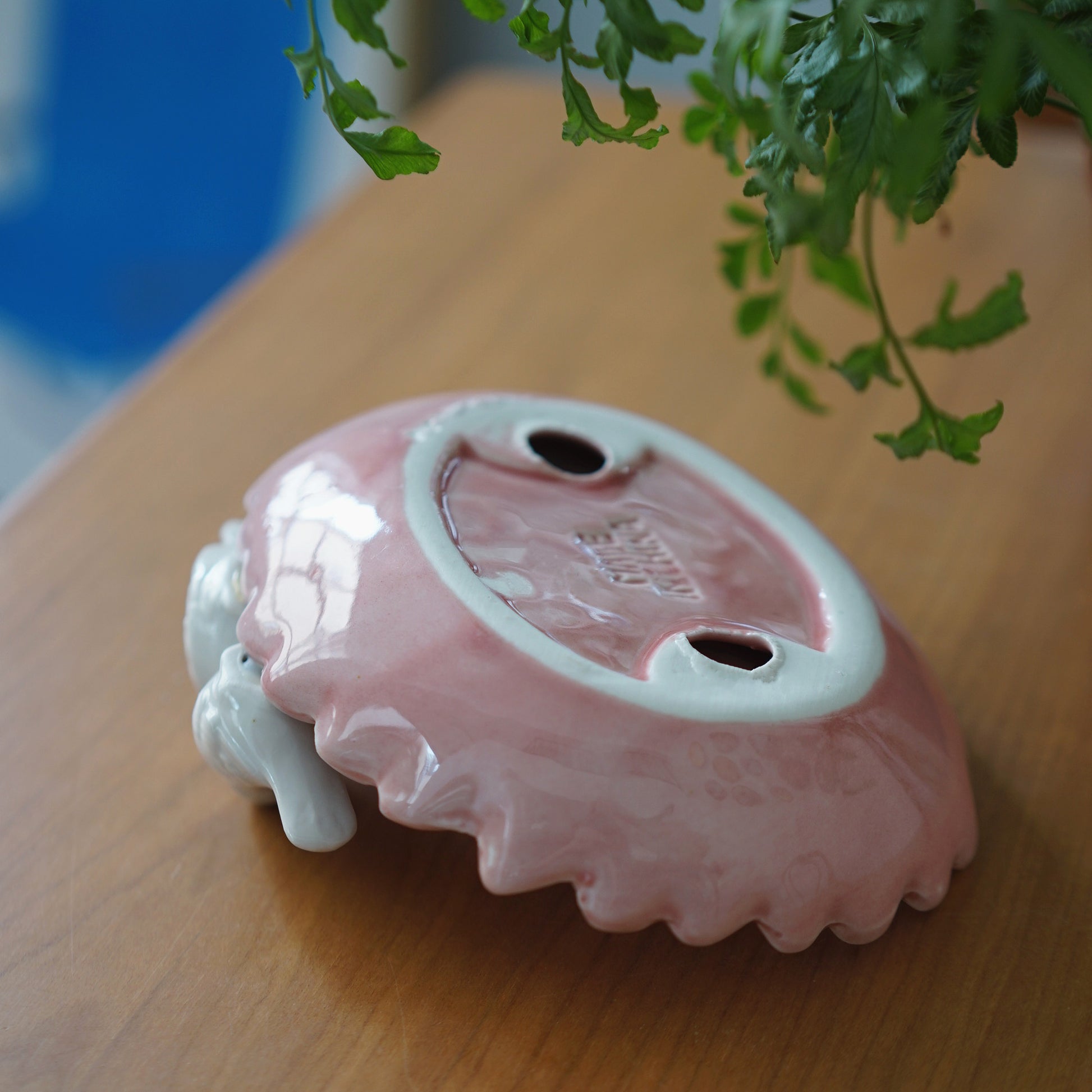 Bring a touch of charm and romance to your entryway, vanity, or bedside table with the Lovebirds Blush Ceramic Tray. Shaped like a delicate pink flower in full bloom, this handcrafted ceramic catchall features two sculpted white birds perched sweetly at the edge—symbolizing harmony, affection, and peaceful living.