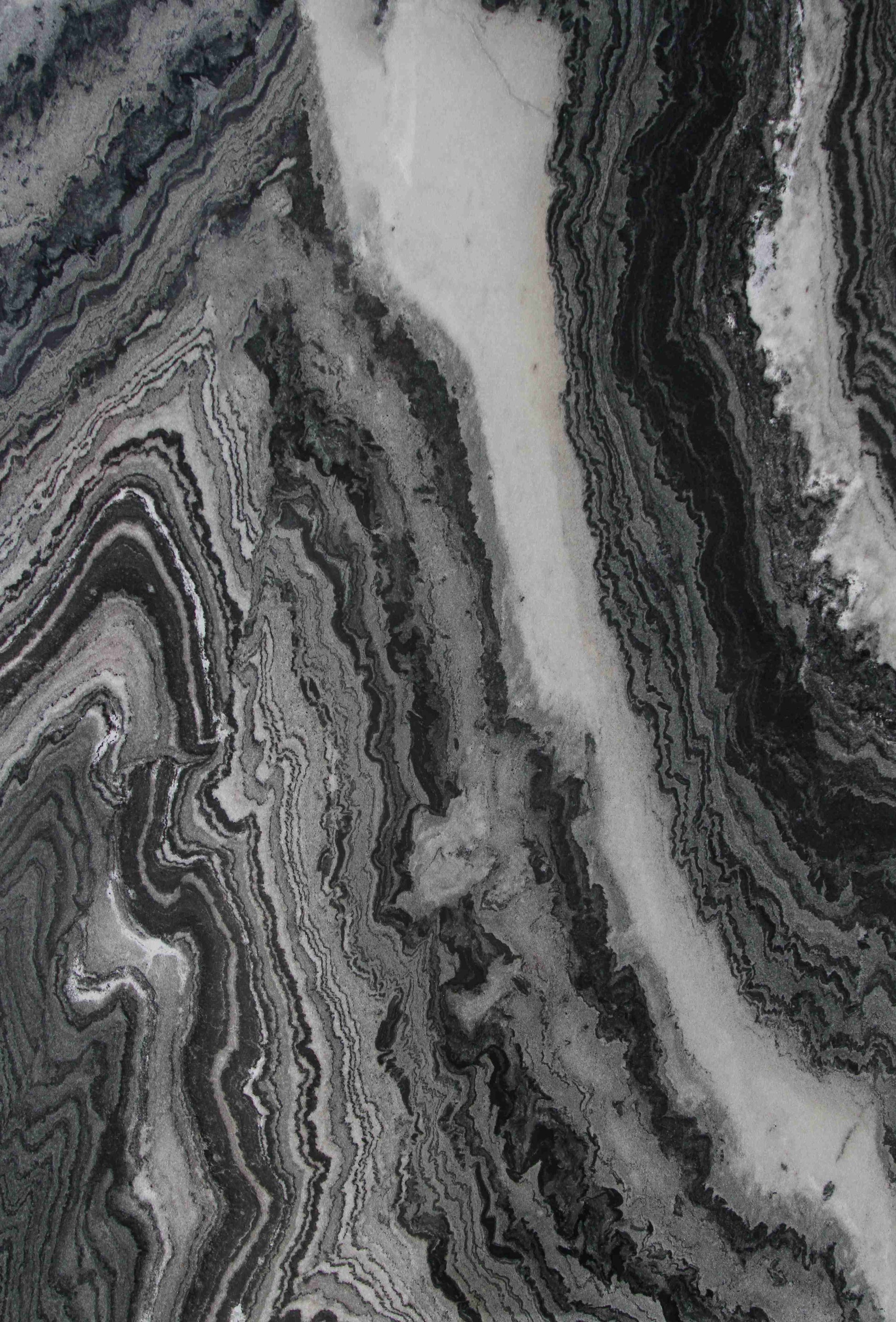 Obsidian Wave Marble presents a mesmerizing interplay of smoky black, silvery gray, and soft white, unfolding in rhythmic, wave-like bands. Its polished finish enhances the dramatic flow and layered elegance of the surface—ideal for statement walls, luxury countertops, or artful flooring designs.