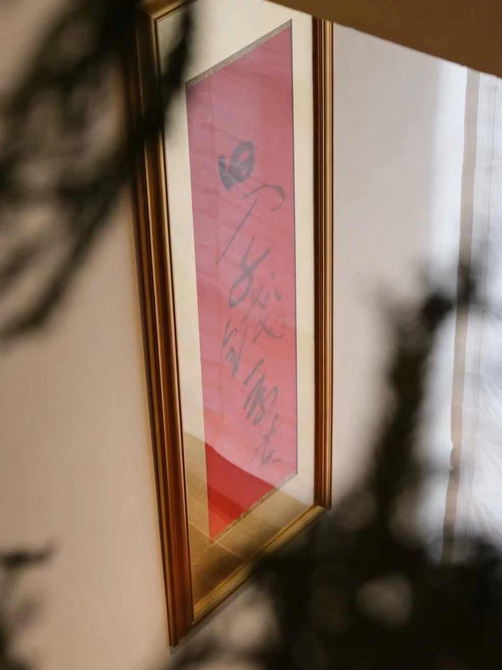 Throughout history, the silk weaving techniques of the Qing Dynasty have been renowned for their exquisite craftsmanship. The silk base of this calligraphy piece is made of gold-splashed vermilion silk, historically used for imperial calligraphy and paintings during the Qing Dynasty. It was often employed for ceremonies, festivals, or inscriptions of auspicious phrases.